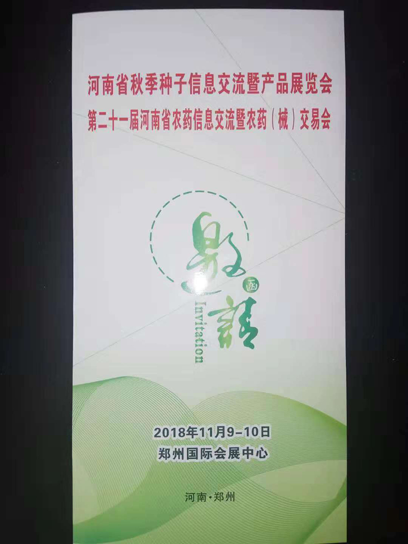 新鄉(xiāng)四方包裝機(jī)械有限公司邀請您一起參加將于11月8-9日在鄭州國際會展中心召開舉辦的2018河南省秋季種子信息交流暨產(chǎn)品展覽會以及第二十一屆河南省農(nóng)藥信息交流暨農(nóng)藥(械)交易會。本公司在C館,展位號為W31。真誠邀請大家光臨我展位參觀指導(dǎo),感受四方不斷推出的新品,并期待各位領(lǐng)導(dǎo)一如既往的支持。